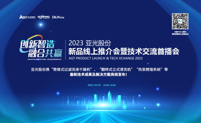 浙江亞光科技股份有限公司2023年度新品推介會暨技術交流首播會將于10月18日盛大開幕。 會議將圍繞亞光股份最新產品及技術,針對化工節能中的熱泵精餾工藝,物料的過濾、洗滌、干燥等連續工藝,中小批量膠...