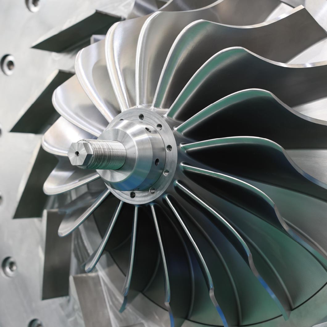 葉輪材質(zhì)是由高強(qiáng)度、耐磨、高耐腐蝕的鈦合金材料鍛造,并通過五軸聯(lián)動銑床精銑而成。